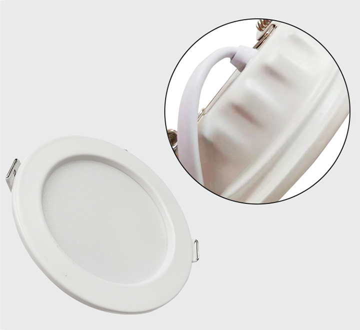 ![]() 3、放入天花板 用手将产品两端弹簧卡扣垂直,装入符合的天花板开孔中。 |